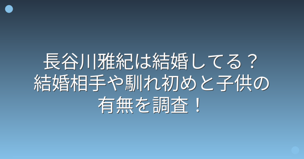 長谷川雅紀は結婚してる?結婚相手や馴れ初めと子供の有無を調査!