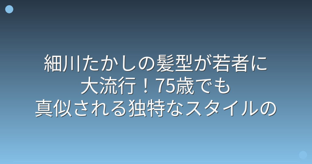 演歌界のレジェンドとして知られる細川たかしさんの髪型が、2025年現在、若い世代を中心に大きな注目を集めていますね。 70代にしてなおトレンドを意識したスタイリングや、独特な前髪の形が話題となり、SNSやテレビ番組でも「細川たかし風髪型」として取...