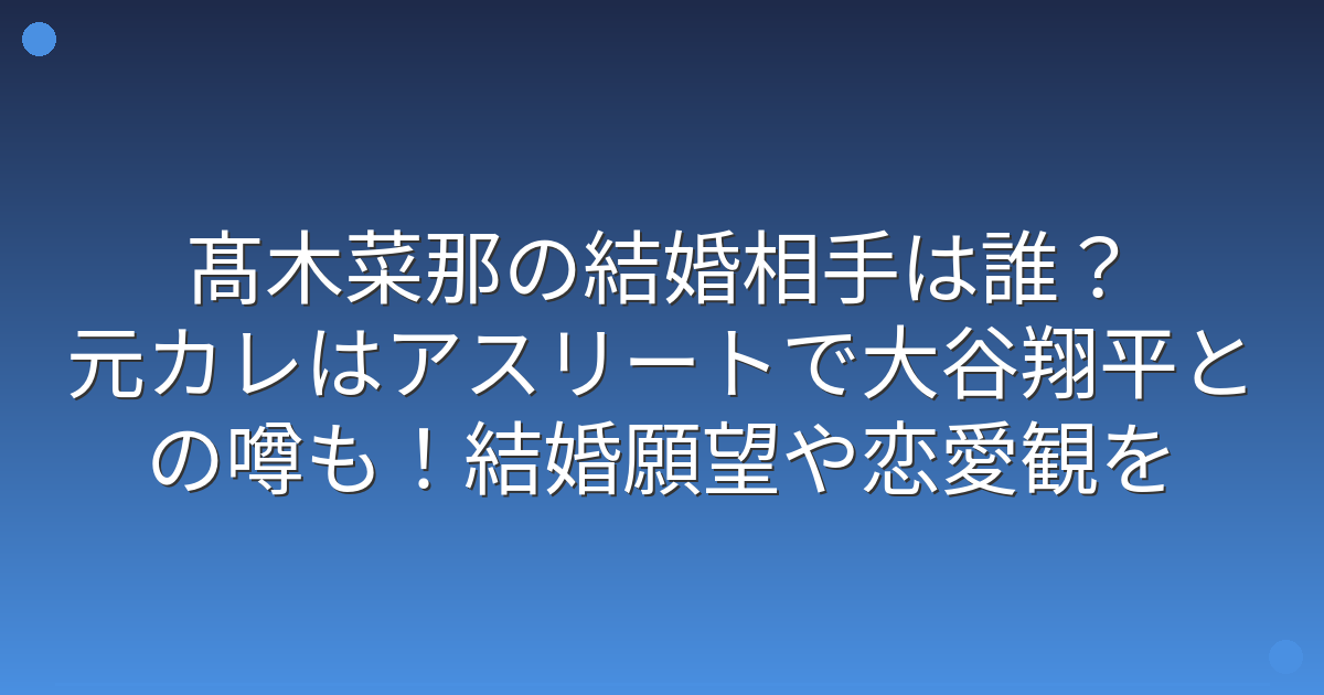 そこで今回は、髙木菜那さんの結婚に関する最新情報や、これまでの恋愛遍歴について詳しく見ていきましょう!