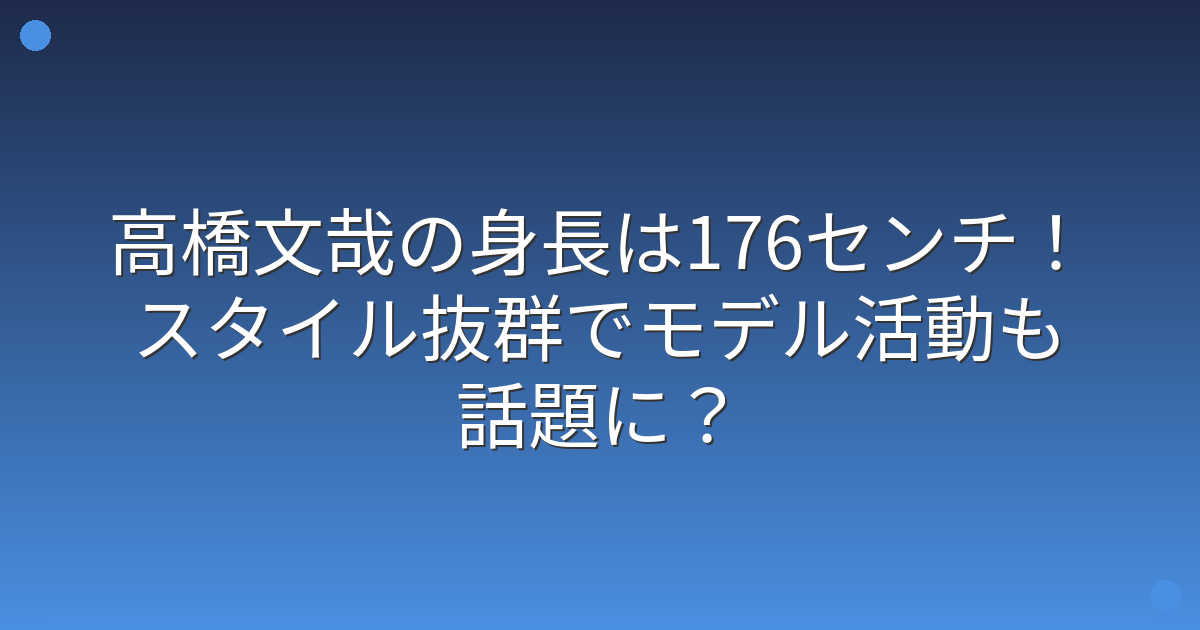 今後も俳優業とモデル業の両方で活躍が期待される高橋文哉さんですが、176センチという身長とスラッとした体型は、彼のキャリアにおいて大きな強みとなり続けるでしょう。