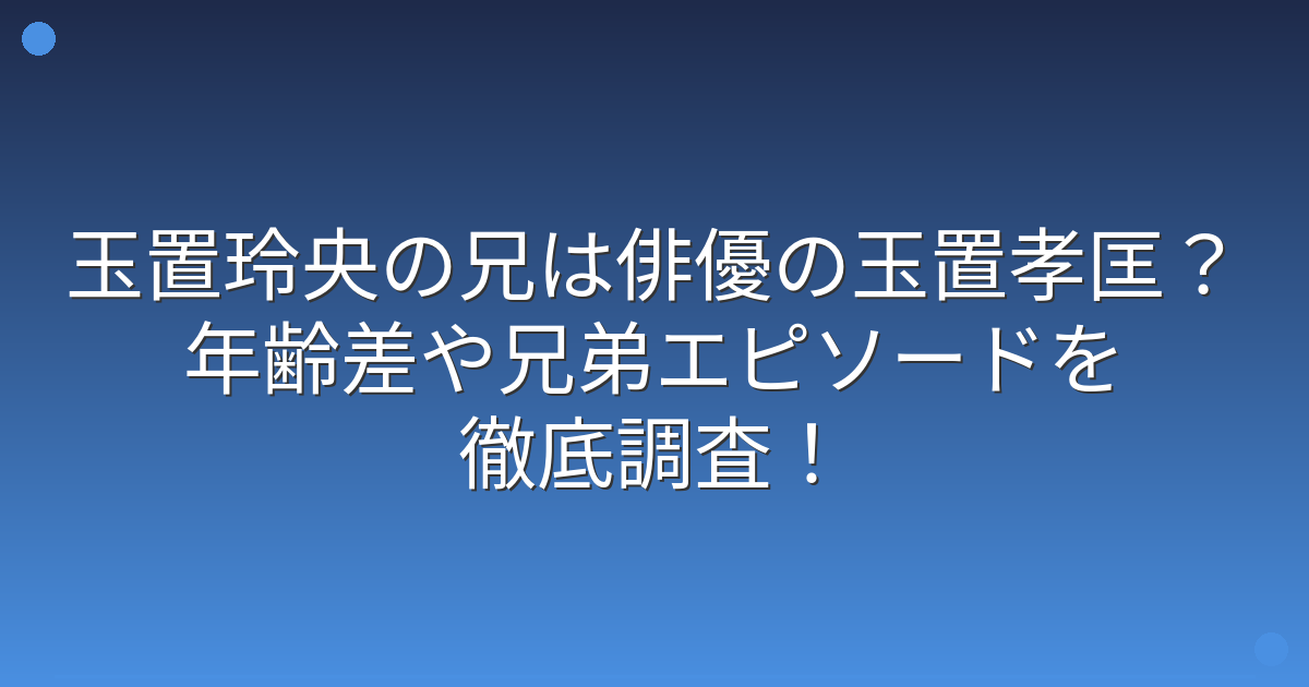 複数の報道によると、玉置玲央さんの兄は玉置孝匡さんという名前で、同じく俳優として活動されているという話があります。