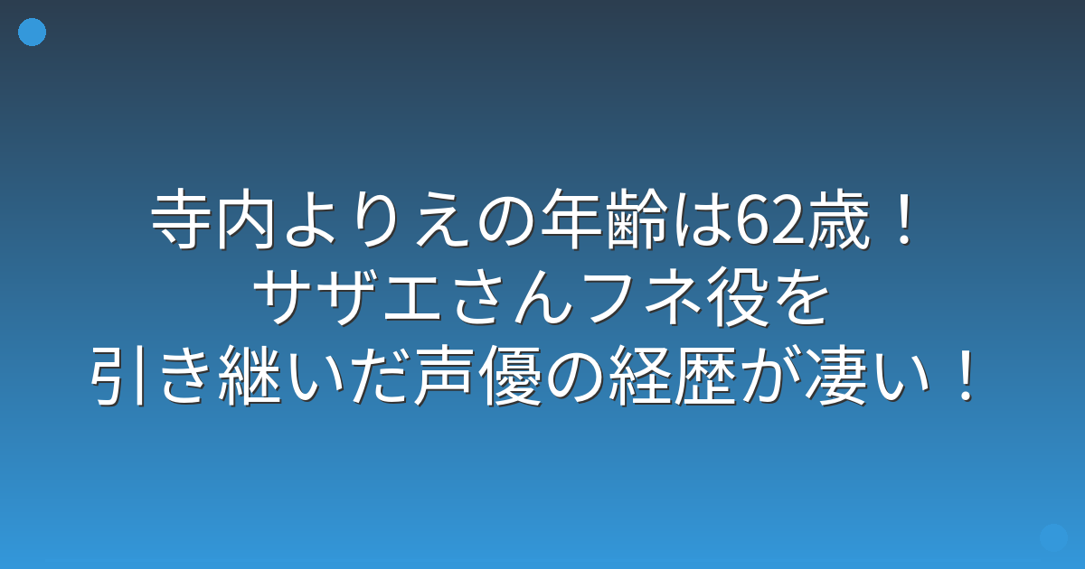 そこで今回は、寺内よりえさんの年齢や経歴、サザエさんでの活躍について詳しく見ていきましょう!