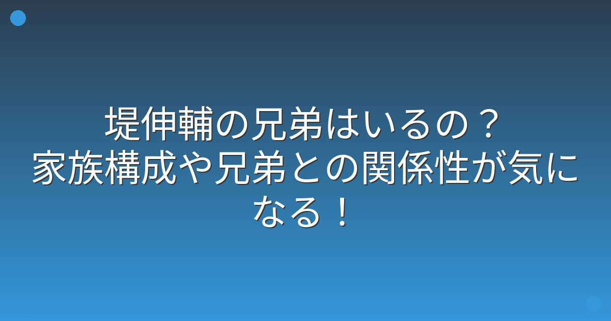 クールな役柄からコメディまで幅広い演技力で注目を集める堤伸輔さんですが、実は兄弟についてはあまり知られていない部分が多いのです。
