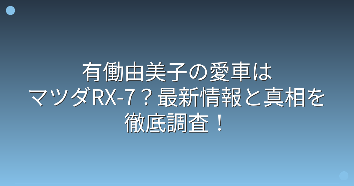 2019年に週刊誌が報じた内容によると、有働由美子さんの愛車はマツダの伝説的スポーツカー「アンフィニ RX-7(FD3S型)」のヴィンテージレッドであるとされています。
