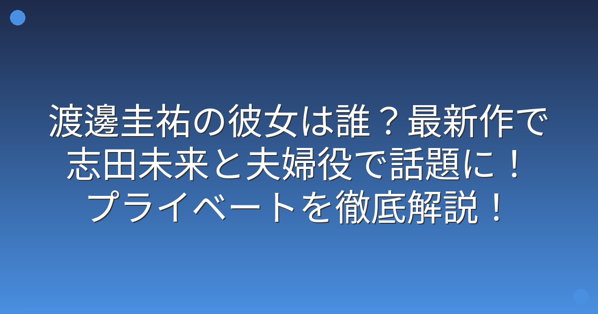 渡邊圭祐さんの彼女に関する情報について、現時点で公式な発表や信頼できる報道は確認されていません。