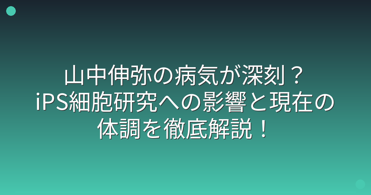 山中伸弥さんの体調不良は、世界的に注目されているiPS細胞研究にどのような影響を与えているのでしょうか。