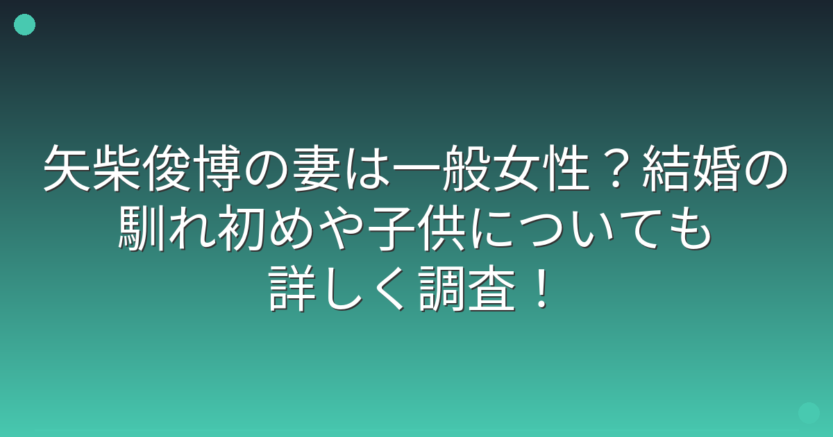 矢柴俊博さんと妻の馴れ初めについては、詳しい情報は公開されていません。