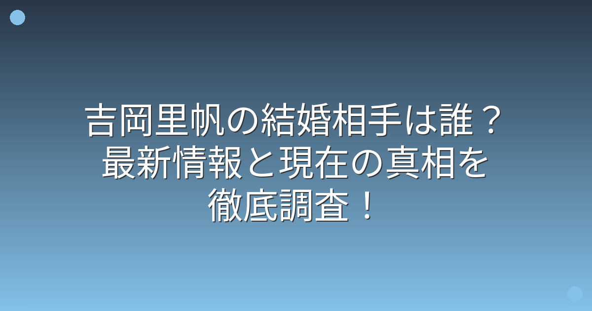 2025年1月現在、吉岡里帆さんは結婚されておらず、結婚相手となる方も存在していないことが分かりました。