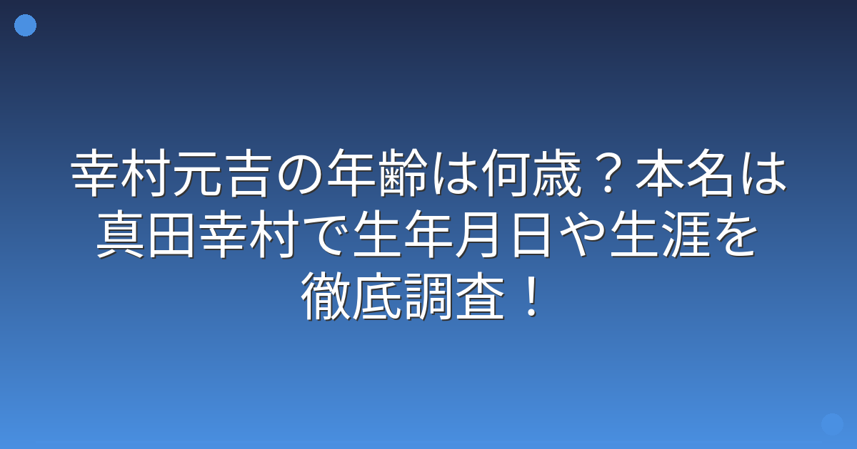 幸村元吉さん、つまり真田幸村のプロフィールについて詳しく見ていきましょう。